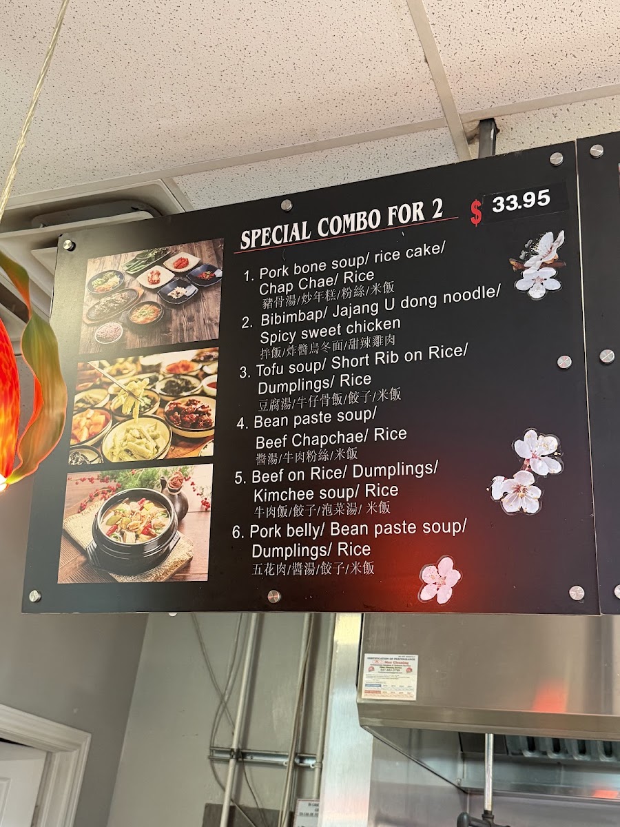 Menu items are organized primarily around main entrees and combination deals suitable for individual or shared meals. For example, special combos typically include a mix of soups, rice, and side dishes. Seasonal or monthly specials like Cheese Rice Cake and Rib on Rice are also available.